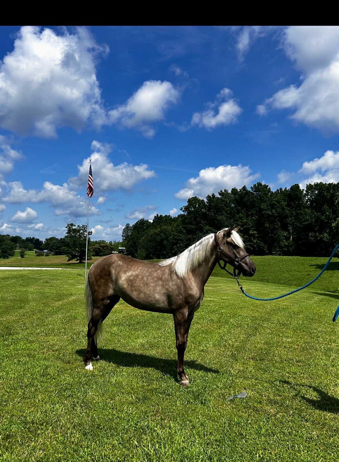 Born at one of the most prestigious farms in Kentucky with Sue and Wendell Wells, he then continued his training with Randy Inman, before leaving to Florida to become Melissa Grimes’ (Alafia Oaks Mountain Horses) trail mount, family horse and producer of top quality babies. His trail pleasure gait is not showy but ground-covering, easy and very very smooth.